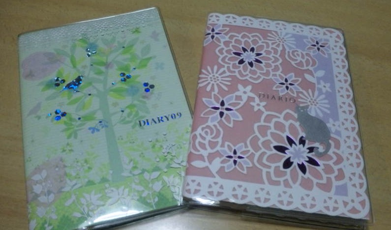 左の緑のは、今使っている2009年の手帳。